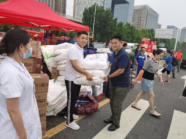 开封市工商联第一时间发出《关于发挥社会力量应急救援优势的倡议书》。全市各县区工商联、市直属商会、广大民营企业积极响应,迅速行动,投入防汛抗灾工作,积极履行社会责任,开展爱心救援、公益捐款捐物等,争做防汛抗灾表率。开封市总商会副会长、天涵建材有限公司董事长展玥,市总商会副会长、尉氏久龙橡塑有限公司总经理陶大中,市工商联常委、开封正大培训中心常务副校长司晓明,市工商联执委、河南龙翔电气有限公司开封分公司陶璟,联合筹措了10万元的抗洪物资,向受灾的尉氏县洧川镇许寨村,捐赠了1160箱矿泉水、400箱方便面、400箱蛋糕、200箱火腿肠、200箱牛奶,为受灾群众和抢险救援队伍带去了日丰的关怀和温暖。河南省政协委员、三毛集团总裁朱红携三毛集团高管,向贾鲁河抗洪一线应急指挥部捐赠矿泉水1000箱。开封市青年继续教育学院向西姜寨乡捐赠800件矿泉水,价值1.5万元;向顺河区消防救援队捐赠牛奶、矿泉水、方便面、西瓜等物资,价值1.1万元。开封市汴京水表厂向驻汴部队、祥符区捐赠葡萄糖口服液150箱、苏打水100箱、矿泉水50箱等。小乐到家(河南)环保科技有限公司向周口市扶沟县抗灾指挥部捐赠价值一万多元方便面、矿泉水等物资。开封青上化肥有限公司总经理韩敬续向开封市红十字会为防汛救灾捐赠现金5万元……